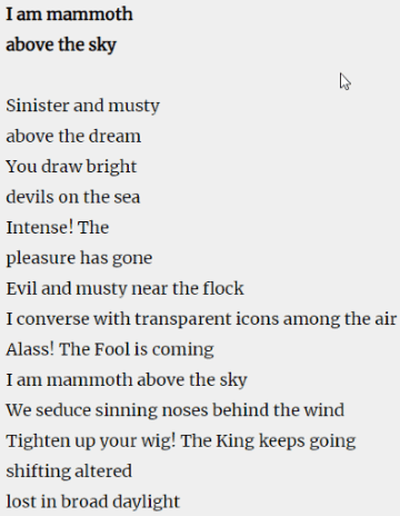 There are other types of online poem generator available on Language is a Virus. For example visual poetry, reverse poem, text mixer, etc. You can try these writing styles to create a poem.