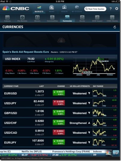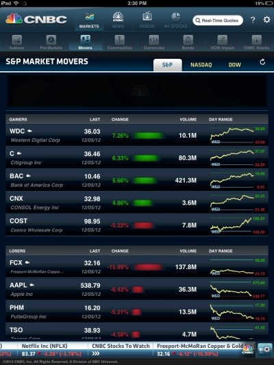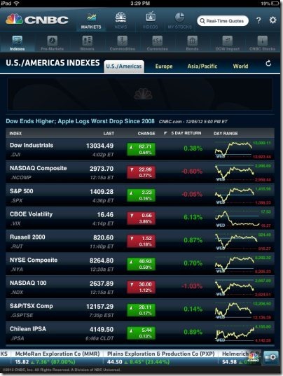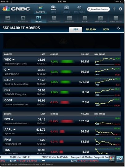 CNBC Real-Time is truly a professional app that provides real-time stock updates on iPad. Also, this is the first app which I found that provides real-time stock quotes of before, during, and after market hours.
