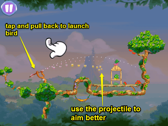 As mentioned in the beginning of the article, the gameplay of Angry Birds Stella is largely the same as earlier Angry Birds games. For the most part, the game requires you to use a slingshot to launch the birds towards enemies and structures. To do so, you have to tap and pull back the slingshot, and then release it to fire off the bird. You can also use the real-time projectile to aim better towards the target.