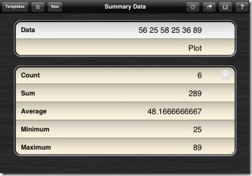 Summary Data helps you to plot the multiple summary of numbers. You can enter many numbers, and then get summary information about them. It tells you the total count, sum of all the numbers entered, average of the numbers, minimum and maximum number in the list. You can even plot the numbers in bar graph. Just tap on the plot button and you will see the bar graph prepared of all the numbers which you have added. Very cool.
