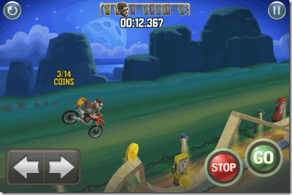 The first bike racing game for iPhone is Bike Race Free. It is one of the most popular bike racing game on iTunes App Store. In this game, you have to make your bike run on the tracks consisting of different hurdles and loops. You need to tap on left to stop the bike and tap on right to accelerate. If you want to do stunts or balance the bike in air, then tilt your iPhone forward or backward. This game is based on Physics concepts as you have to keep an eye on everything like height of jump, angle required to do stunt, height of hurdles and size of loop etc.