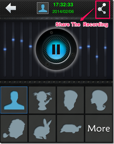 Tap on the voice tile which you want to use. The voice will get saved automatically to your device. If you want to share the file, then tap on the icon at the top right corner of the screen. The app lets you share the changed voice files only via email.