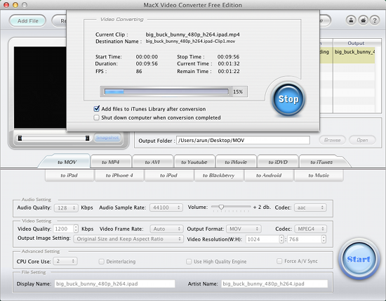 This is a free video converter for Mac OS X that converts a diverse range of videos to the required output. This free app also allows you to convert videos to MP4 so that it can be played on an iDevice. The application’s interface is little complex but once you get a hold of things you will be tweaking videos parameters according to you needs. This free app like most provide you with the ability to do batch processing. The interface of the application looks a little old-school but don’t worry this app has really nice functionality and features. Only part I did not like about it was the interface. Every thing else is good. To download this free video converter for Mac click here.