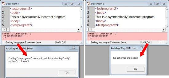 XRay XML Editor is a free XML Editor that lets you create and edit error-free XML documents. It’s a powerful XML Editor that does real-time parsing of your XML text and gives instant feedback about the state of your XML document. It checks every line of code that you type, in real-time, and tells weather it is syntactically correct or not. And if not, it indicates the type of error you have made with its proper description.