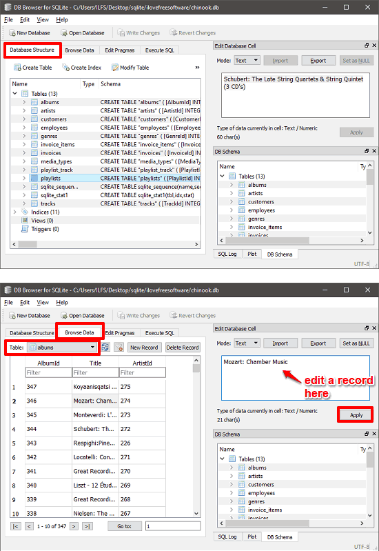 Database Browser is another handy SQLite editor software for Windows. And not only SQLite, the software also supports other database file types to view and edit. You can easily make a connection to SQLite compatible databases using this software. And then it will return the database components from that file. The software can only list the tables from a SQLite database. It will not show you other database components like procedures, triggers, views, etc.