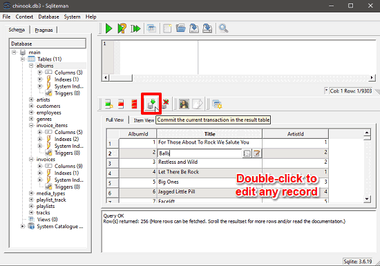 When you have edited the data, hit the commit button from the toolbar to save the changes. Additionally, if you want, you can export database file in CSV or SQL format.