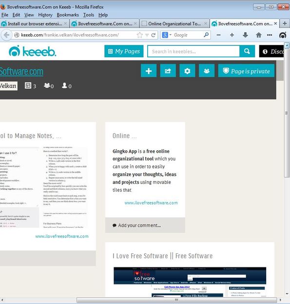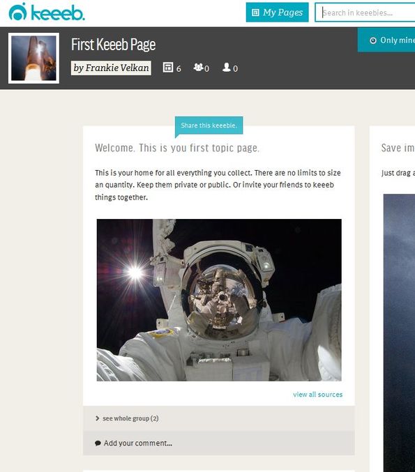 Keeeb is a free online content sharing network where you can create your own multimedia pages filled with images, videos, text and even audio. Once that you create an account, for which you can login using all the popular social networks like Facebook and Twitter, you can create “keeebies” which is what pages are called. They can be either private or public, and you can also access and become a friend with other members of the Keeeb network.