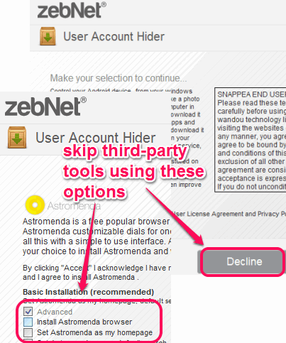 You can install this software with the help of its installer. Grab the link available at the end of this review to download the installer. Its installer comes with bunch of third-party products. So you must be careful during installation. You have to choose Advanced installation mode and use Decline buttons to ignore all the third-party products.