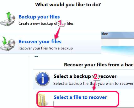 Step 2: Insert the backup file that you have created using Select a file to recover option.