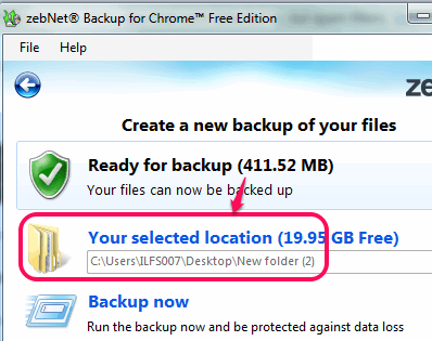 zebNet Backup for Chrome (free edition) is a useful software that is used to automatically backup Google Chrome data. Later, you can restore the saved backup file to get back to previous stage of your Google Chrome browser.