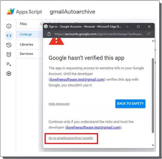 - If Google blocks execution and gives warning, then click advanced and then proceed further.