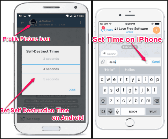 This tutorial will explain how to send self destructive messages on Telegram for Android and iOS. After going through this simple tutorial, you will learn how you can send self-destructive messages on Telegram such that the messages will disappear after a specific time. This feature works on both Android as well as iPhone/iPad versions of Telegram.