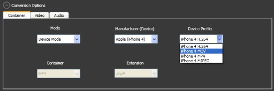 - Profiles: You can choose from a variety of file format options: MP4 (MPEG4), MP4 (H.264), MOV, MKV, AVI (Microsoft MPEG 4v3), AVI (Xvid), OGG, ASF, WMV, FLV, MP3, 3GP.