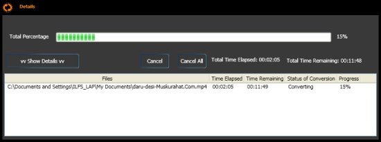 - Show Status Details: It shows proper status details while converting files; like, how much time is left, how much time is elapsed, conversion percentage, etc.
