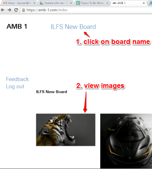 After this, come back to your AMB 1 account and you will see that a new board is added automatically. Clicking on that board will show you all the images added by you.