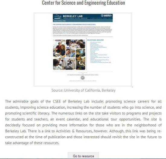 The resource link opens a new page that displays the screenshot of the resource (if available), its full description, and link to go to the resource.