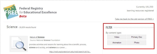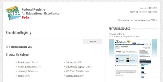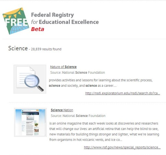 Federal Registry for Educational Excellence (FREE) is an online source to find free educational resources created and maintained by the federal government, and other public and private organizations. It is powered by The Learning Registry, an open database for sharing digital learning and teaching material. Currently, FREE provides access to nearly 221,989 educational links, and is still growing in number. It’s a great place for teachers, students, and parents, to search through a wide repository of digital learning material.