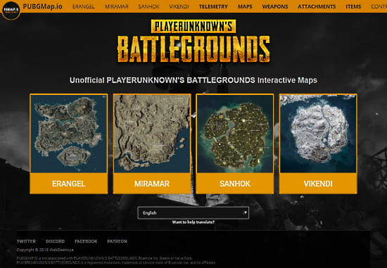 PUBGmaps.io is a very helpful website for PUBG gamers or anyone who want to understand the game. The homepage shows you all four PUBG maps in the exact order as in the game. Below the map, it has an option to change the language that covers over 50+ popular languages from all around the world.