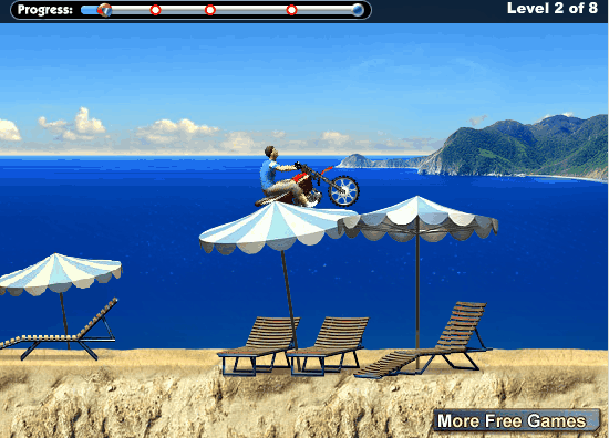 Out of all the games, I enjoyed playing Moto Trial Fest 2. This game challenges you with a wide variety of terrains for riding the dirt bike. You have to use the arrow keys to drive the dirt bike as well as to maintain the control over it. Each level is filled with different types of obstacles which will keep making it harder for you to control the bike. The unique thing about the game is the way the bike rider reacts to different situations and especially when it falls off the bike. Most of the time, it ends being funny when he falls down.