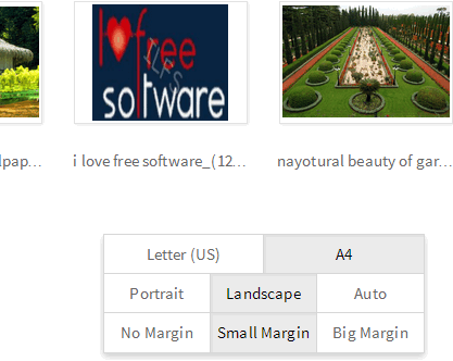 Using JPG to PDF tool, you can add multiple jpg images together. A single PDF file of all jpg images will be created automatically. Interesting feature present here is that you can set PDF page type (Letter or A4 sheet) and can set images as landscape or portrait. Margin between images (small, large, or no margin) can also be set by you. However, it failed to create PDF file for multiple jpg images during my testing. So, you won’t find it much useful if the same problem happens to you. But for a single jpg image, it worked perfectly.