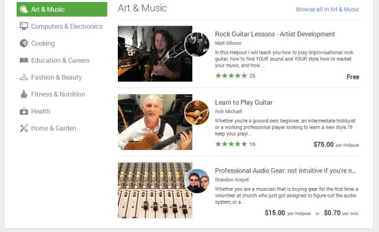 Users need to have a Google Plus account in order to get or provide live video help. The video calling is done using Google Hangouts, payment via Google Wallets, and search for vendors and experts via Google Search. So in way, Google highlights many of its other services via Google Helpouts.