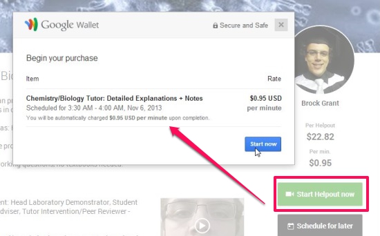 If you opt for a free help, you aren’t require to give any payment. But if you opt for a paid help, you would have to use your Google Wallet account and enter your debit/credit card details to begin the Helpouts session. Payment would be made once the session is finished.