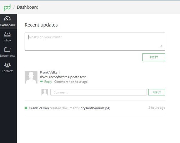 This free online document sharing service is also available on all the major mobile platforms so recipients can also receive and sign the documents that you send to smartphones and tablets. What you see on the image down below is the PandaDoc dashboard where something very similar to Facebook timeline can be seen. This is where you can share your thoughts and your document uploading activity can be kept track of.