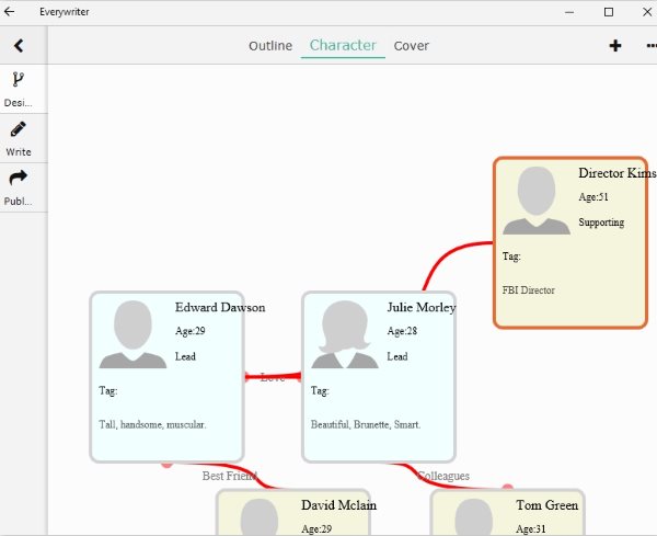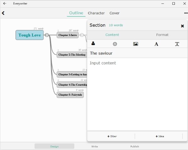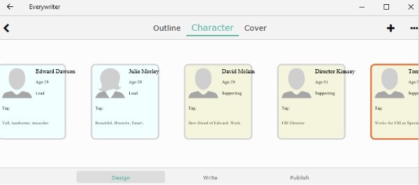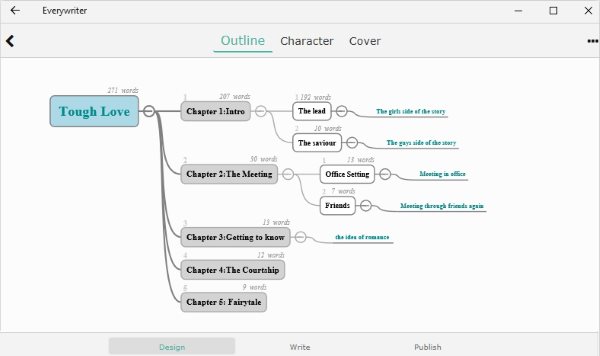 Everywriter is a nice tool that lets you design the outline of the novel, lets you design the characters in the novel, lets you make a book cover design, lets you export the entire things as well. You can even publish your book or stories on the reading platform of the app, where other users can read and leave comments for you.
