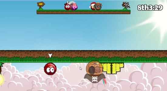 Let’s start with the practice mode. Once you click the practice mode you will be shown all the players, which are one you and 7 CPU players. When the game starts the ball starts rolling. You have to avoid various obstacles in the way and jump over them.