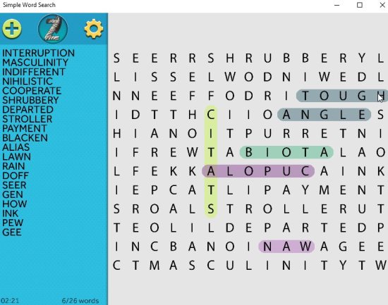 Simple Word Search is a free Windows 10 word search game app where you have to search for words from the given grid. The app doesn’t require you to create a account or sign in. Just start the game and start finding words from the word grid.