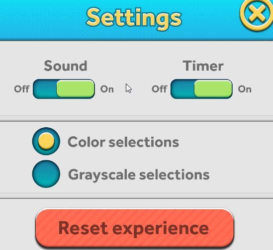 You can also tweak a few settings like turn the sound and timer on or off. Choice can be made between color selections or grayscale selections.