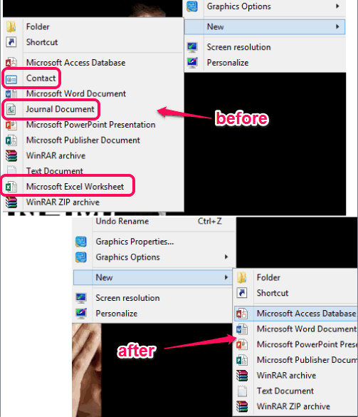 In above screenshot, you can see the before and after comparison of right-click sub menu “New”.
