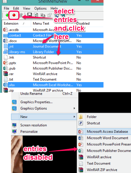 On its interface, it provides the list of all entries of ‘New’ sub-menu. Using its interface, you can batch disable entries and vice-versa. So, when you want to display only important entries, this software is handy. Later on, you can enable all disabled entries according to your requirement.
