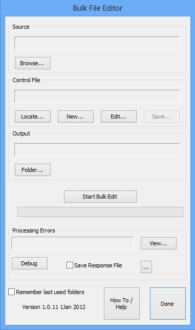 Text documents that you’d like to edit have to be open up all the way at the top, using the Source open file dialog. Multiple files can be opened at once. Scripts with instructions on how to edit opened text documents can be opened as files, they are called Control files, or you can create and edit them manually, notice the New, Edit and Save button next to Load. Original text files are not touched by this free batch text editor, they’re only edited and saved in a different location.