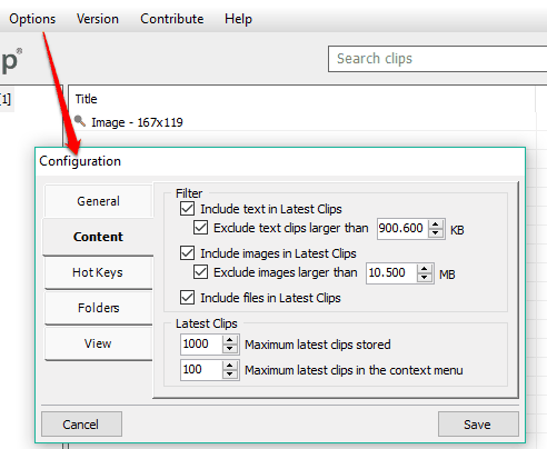 This free clipboard manager can store maximum 1000 clips on “Latest Clips” section available in the Manager window. However, you can move saved or latest clips to any folder on your PC or on a cloud storage service (like Google Drive, Dropbox, etc.), if you have installed the desktop client of that service.