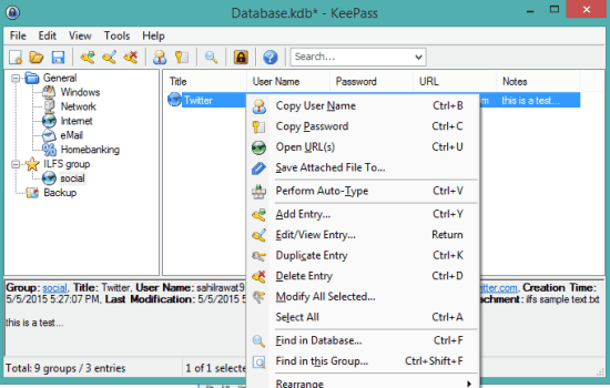 KeyPass is one of the best LastPass alternative software in this list which saves all your login credentials in a database. That database is encrypted with TwoFish AES encryption algorithms and database remains and belongs to you only. Master password feature to lock the interface of this password manager and access all your login credentials is also available.