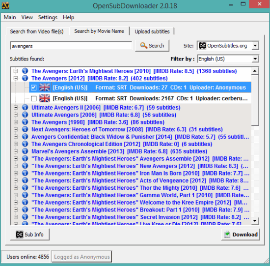 By default, it shows subtitles in different languages. However, you can filter subtitles by selecting the preferred language. Option to upload subtitles for a particular movie is also available in this software.
