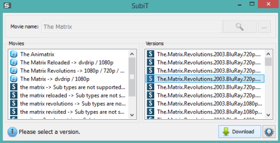 SubiT is one of the best software in this list that supports 6 different sources to find and download subtitles. All you have to do is type the movie name and it will suggest all the parts of that particular movie available in different sources. After this, you can double-click on any movie name to get the subtitles. Apart from this, you can also drag n drop your movie to find the subtitles.