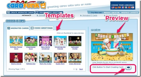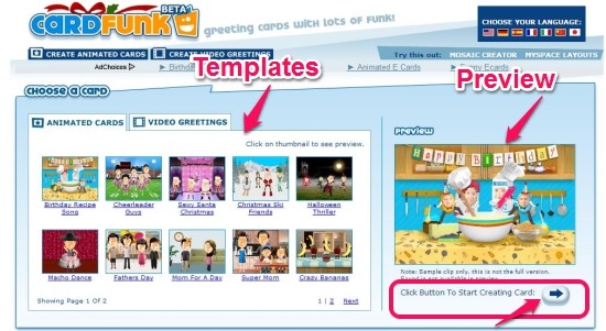 Cardfunk is a free web app that allows you to create animated greeting cards, video greetings and holiday cards with the help of various funny templates. This greeting card making app lets you customize your card as it allows you to add photos and greeting message, which you can then send to your friends and loved ones.