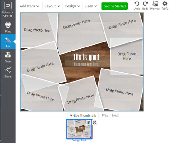 Apart from designing photo keepsakes, it also assists you in printing various photo keepsakes by providing its print preview, change page sizes, and 2-D/3-D printing. However, it requires an internet connection to work and some of its editing options and templates are not available for free.