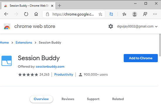 In order to restore a previous session in the Edge Chromium browser, Microsoft introduces a new extension tool known as Session Buddy. Using this application, you can easily manage the browser Tabs and the bookmarks available in the Edge Chromium. So, to get the Session Buddy add-on, first, you have to open the official extension page using this link.