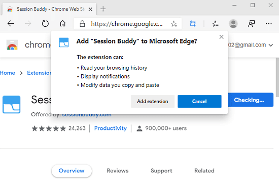 Click on the “Add extension” button to allow reading the browsing history and displaying notifications as per their requirements. It might also need to modify the data you copy and paste. After that, you will observe that the Session Buddy extension tool starts appearing next to the address bar.