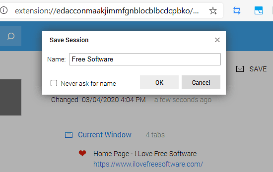 For example, I used “Free Software” name while saving the session. So, you can see the session with the same name under the “Saved Sessions” section.
