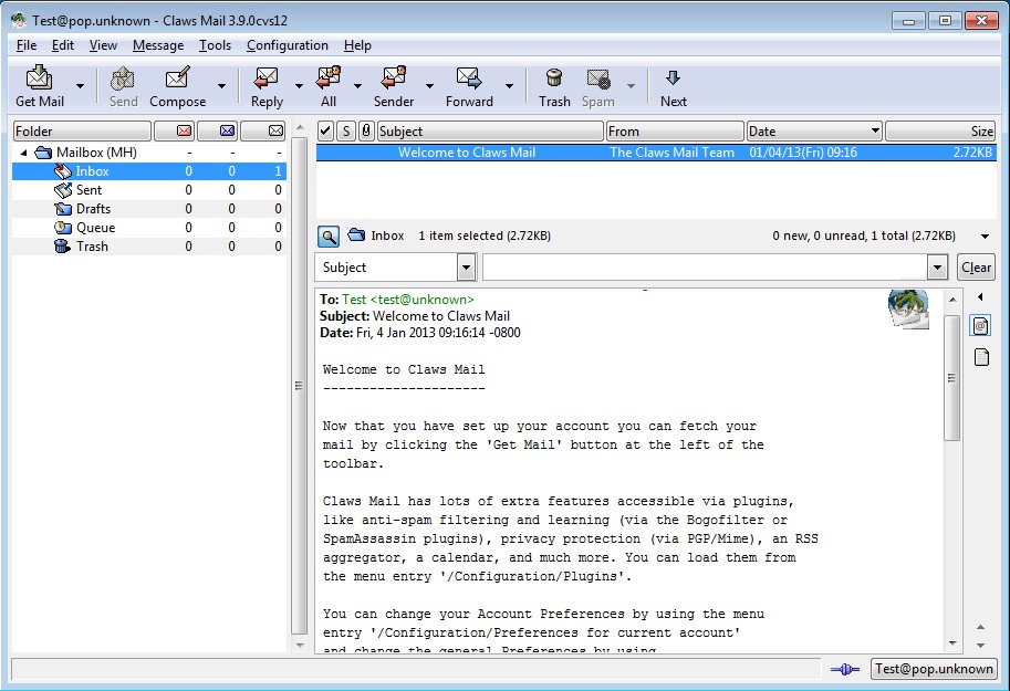 Claws Mail free email client default window