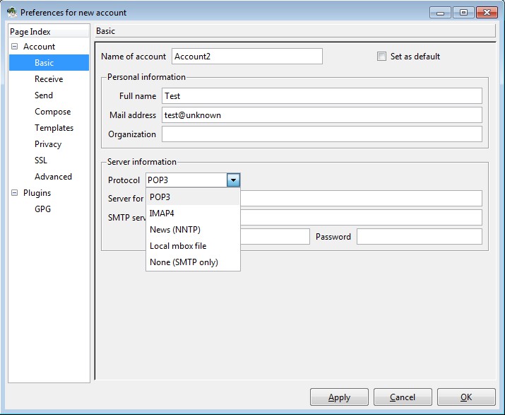Claws Mail adding new account