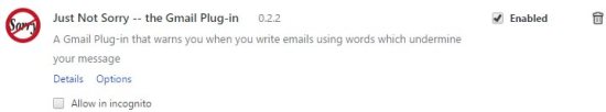 Just Not Sorry is a Chrome extension for Gmail which helps you in writing better email messages. Its not a Grammar or spell checker though. Now you must be thinking what can help you write better emails. The answer is this extension. It underlines any words or phrases which undermine your message or have negative effects. Usually when writing an email you don’t pay attention to what words will have what impact on the person who is reading. You might be using words which undermine your message or show lack of leadership or confidence.