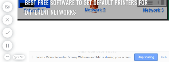 Step 3: You will see some controls on your Chrome browser and a message box displaying a message that Loom is sharing your screen. These controls are not shown in the recorded video. You can choose to pause and resume screen recording at any time. To cancel the screen recording process, click on the “X” button. The best part is if you choose to record the entire desktop screen, then it this Chrome extension records just like any standard screen recording software.