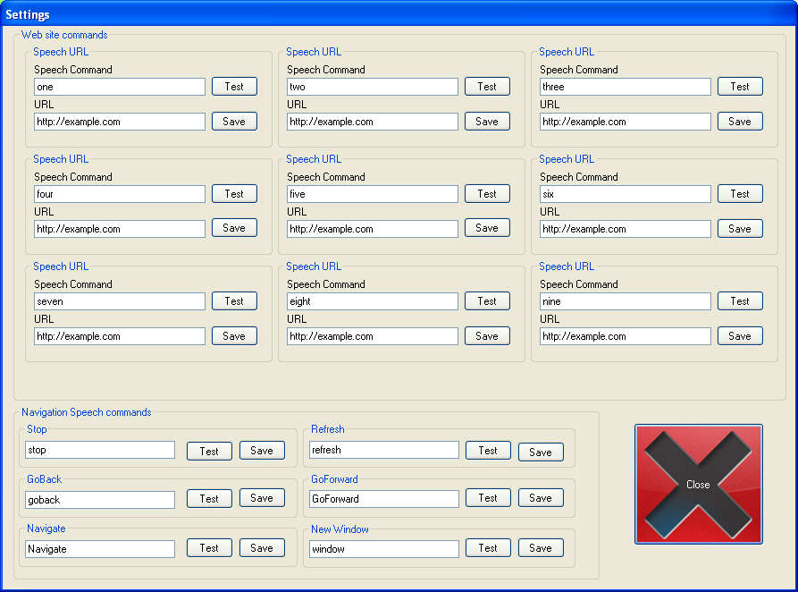 Two things need to be entered in order for the Bookmarks to become active, a Speech Command, and the URL which this particular speech command will recognize.
