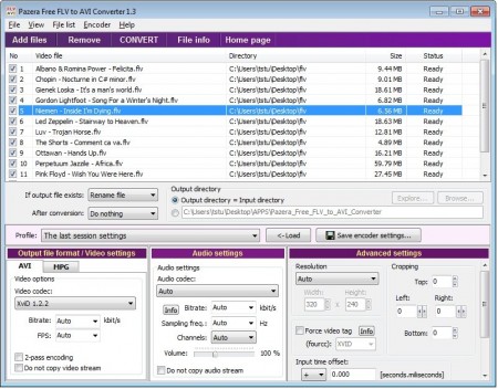 Pazera Free FLV to AVI Converter is a free video converter that allows you to convert Flash Video to MPEG or AVI files. Once you convert FLV files to MPEG or AVI, you will be able to play these files with almost any media player. FLV is a common format used by many popular video sharing websites like YouTube or Yahoo Video. This common and widely used format is not supported by Windows Media Player so many people face problems when trying to open this format. But you can avoid this problem by using this free FLV video converter (or, you can use some specialized Flash players like Free FLV player, and Free Flash player to play Flash files without converting).