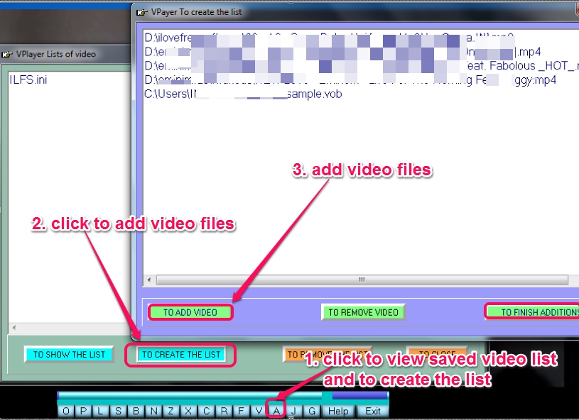 VPlayer supports drag n drop feature to quickly play an audio or video file. Or else, you can use ‘O‘ button to open a media file to play with it. In similar way, you can use other buttons for different tasks. Such as to edit a video file, reproduce (or play) an edited video, create or reproduce a video list, and more.
